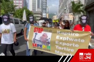 4-ti-lapat proteste contre l’exploitation des macaques.