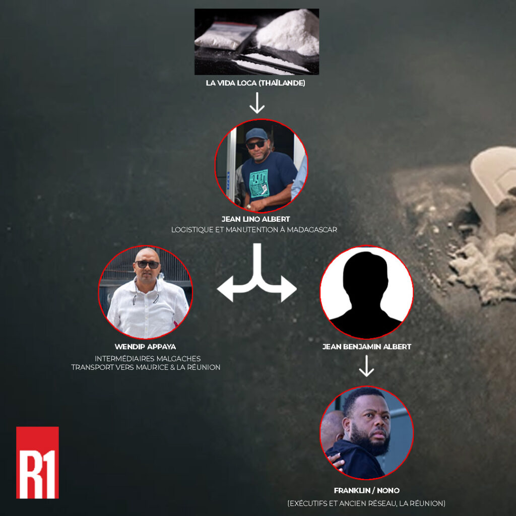 Jean Lino Albert représente également le pont entre l’ancienne et la nouvelle génération de trafiquants. Cousin de Jean Benjamin Albert, déjà en détention à Madagascar, il est lié aux réseaux de Franklin, figure connue du trafic entre Maurice et La Réunion.