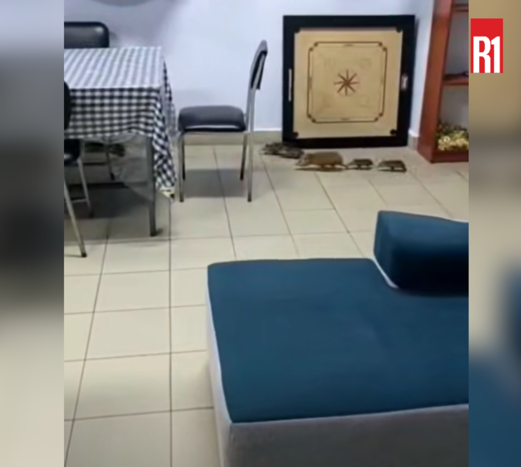 Cette vidéo montre des « tangues » infestant la salle des médecins de l’hôpital, avec un inconnu utilisant un balai en plastique pour les repousser.